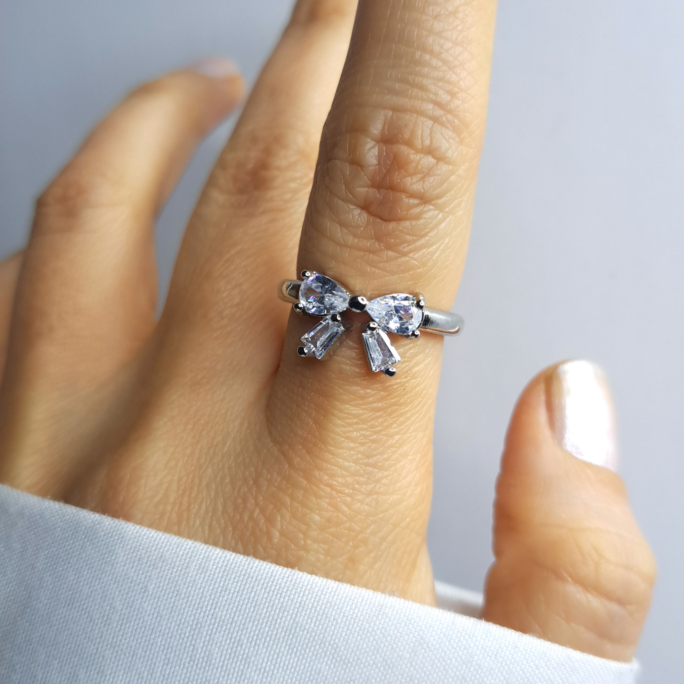 انگشتر پاپیون نگین سفید