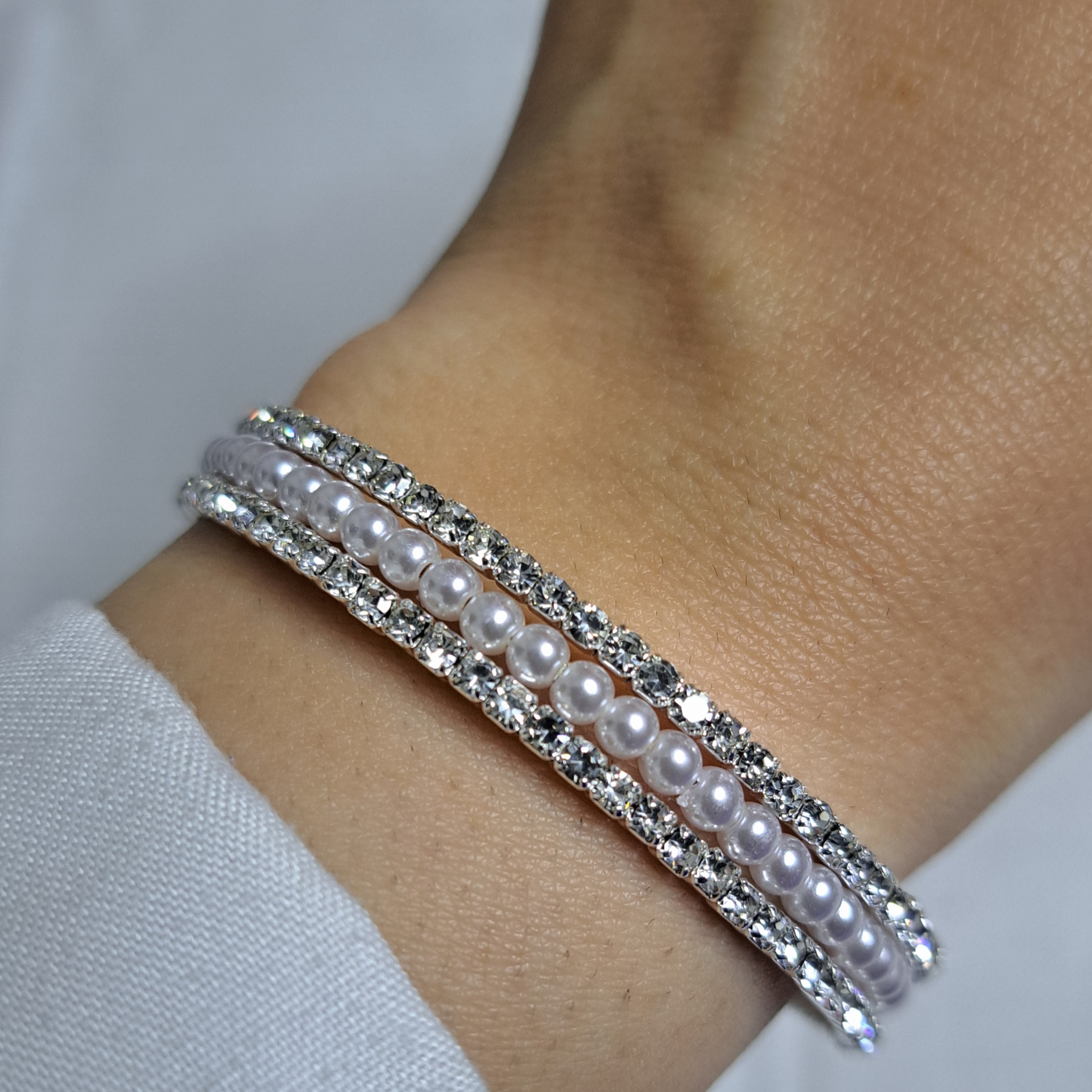 دستبند فنری سه لاین مرواریدی دستبند تنیسی