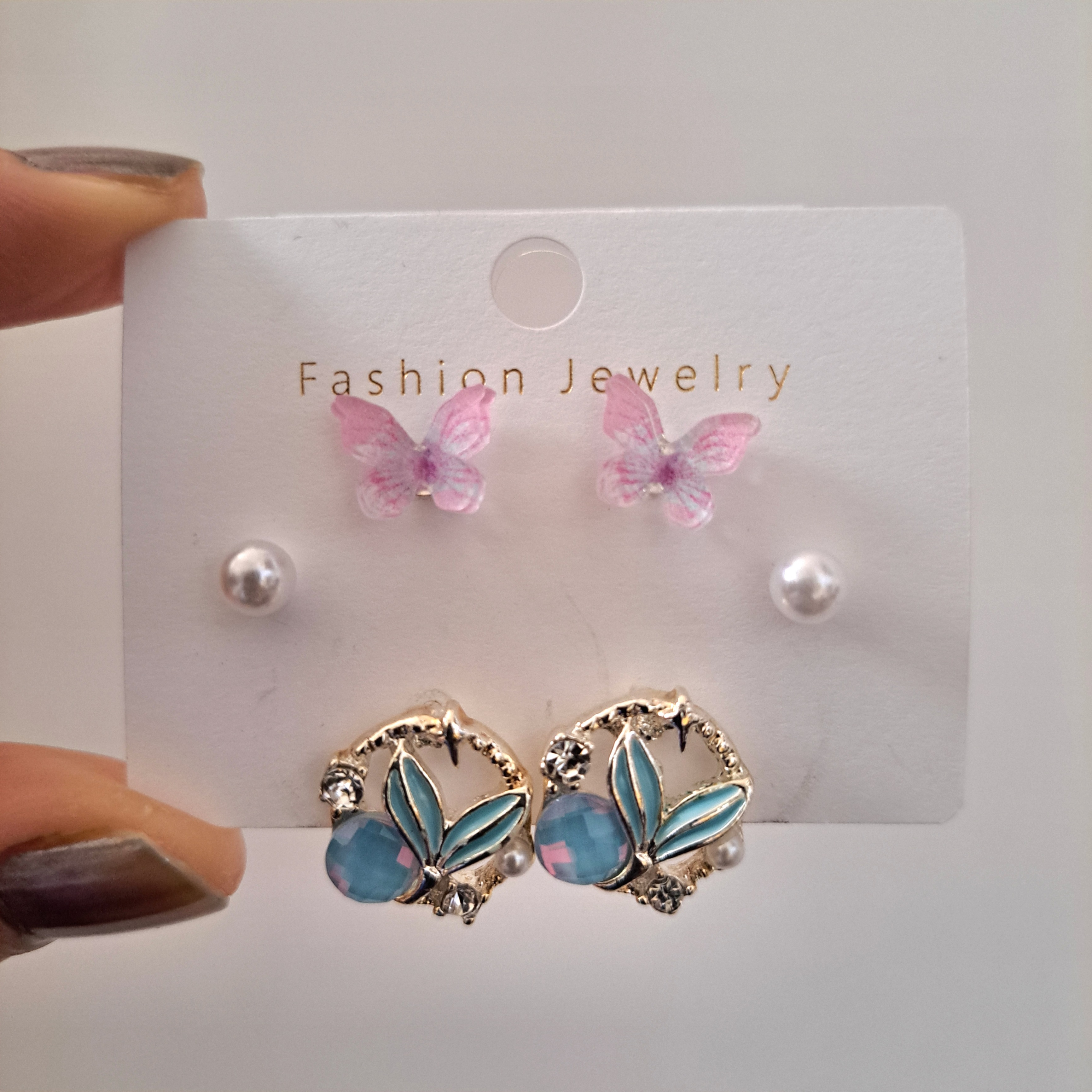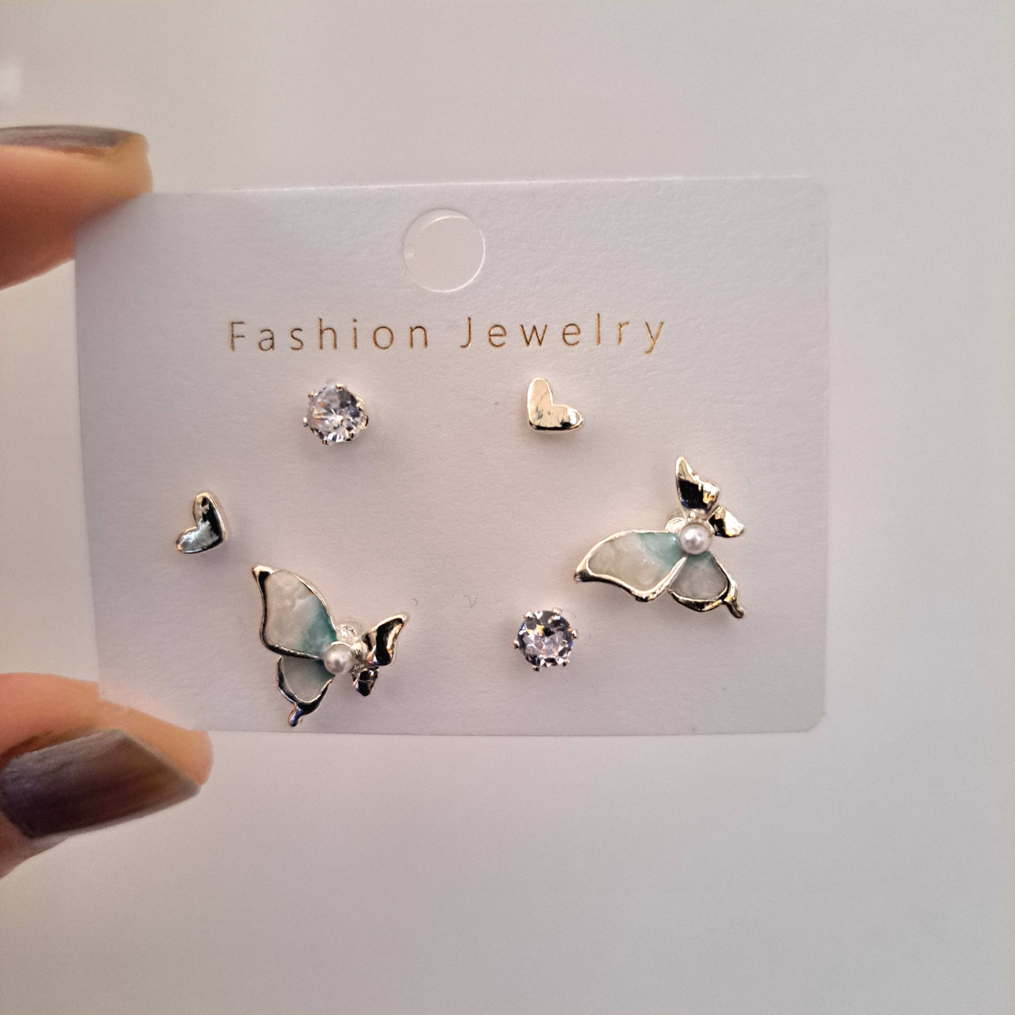 پک گوشواره ۳ جفتی پروانه و قلب
