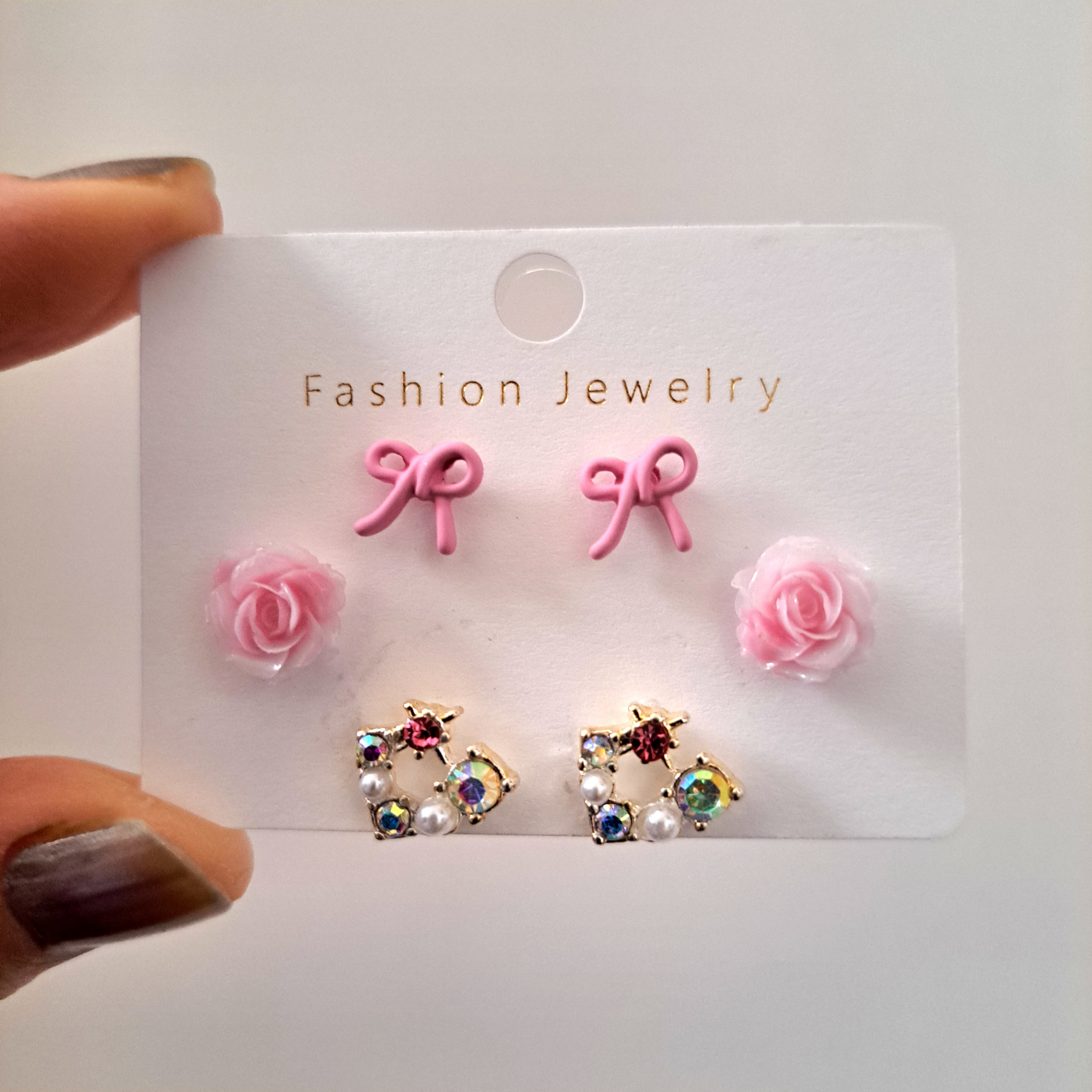 پک گوشواره ۳ جفتی گل رز و پاپیون