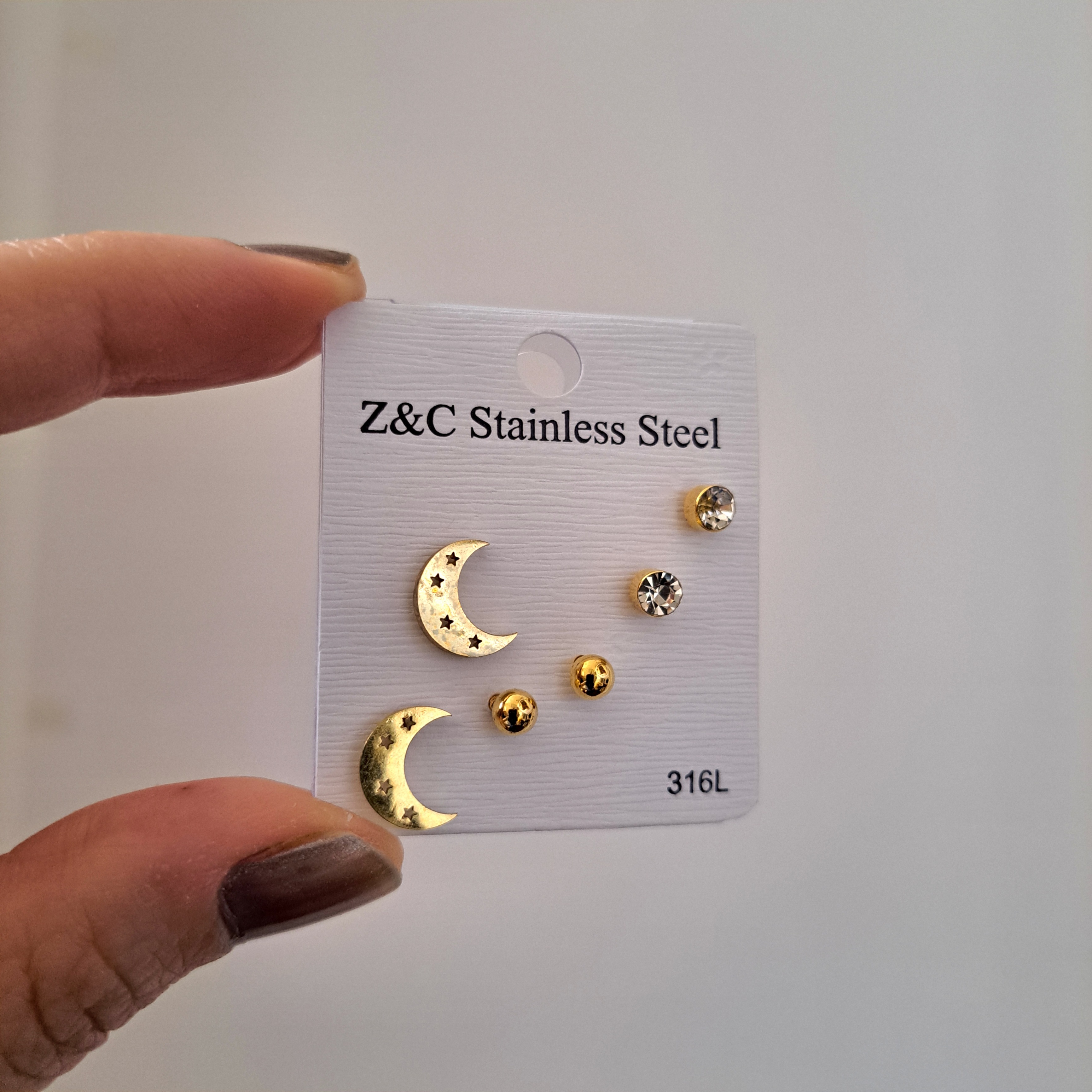 پک گوشواره ۳ جفتی استیل طلایی طرح ماه
