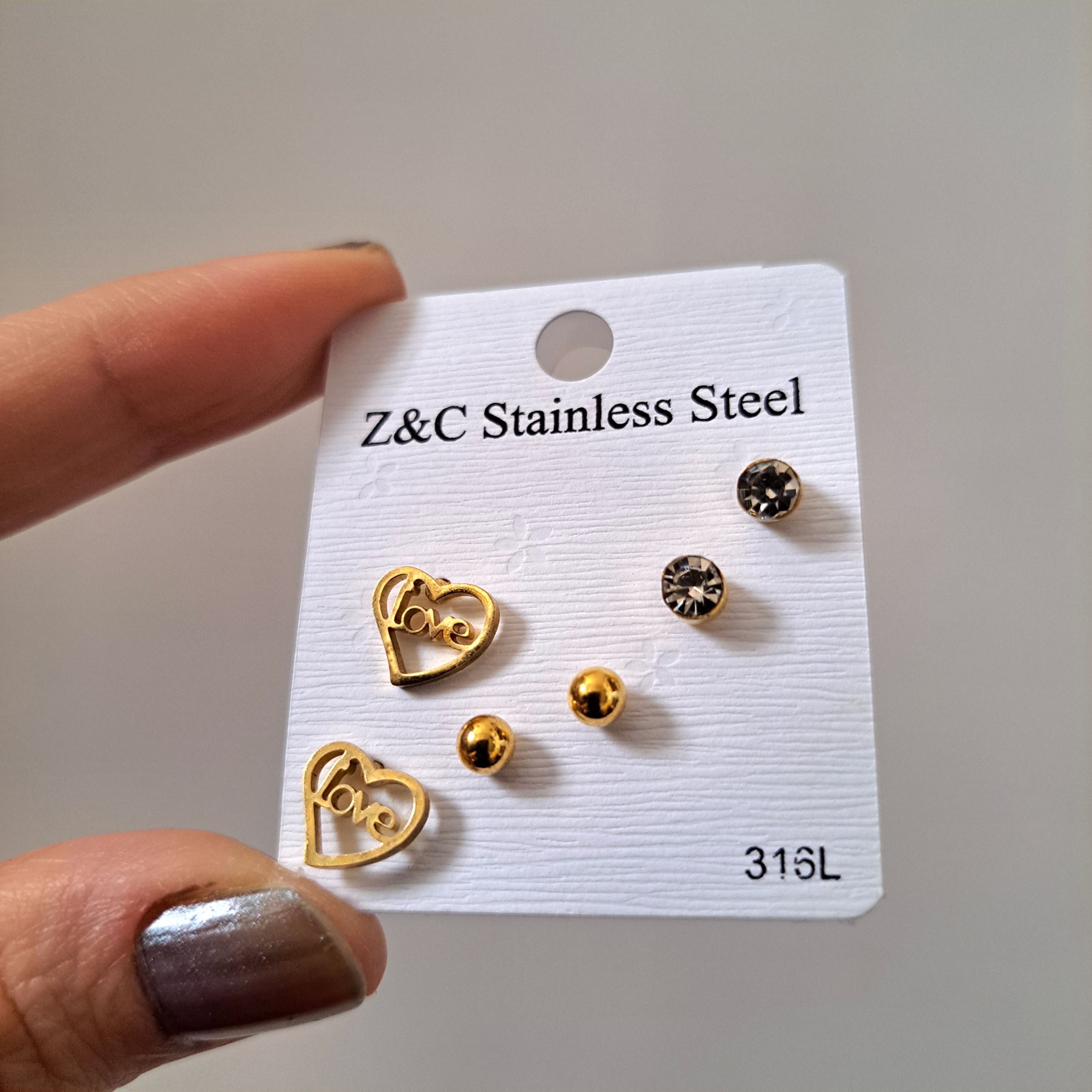 پک گوشواره ۳ جفتی استیل طلایی طرح عشق