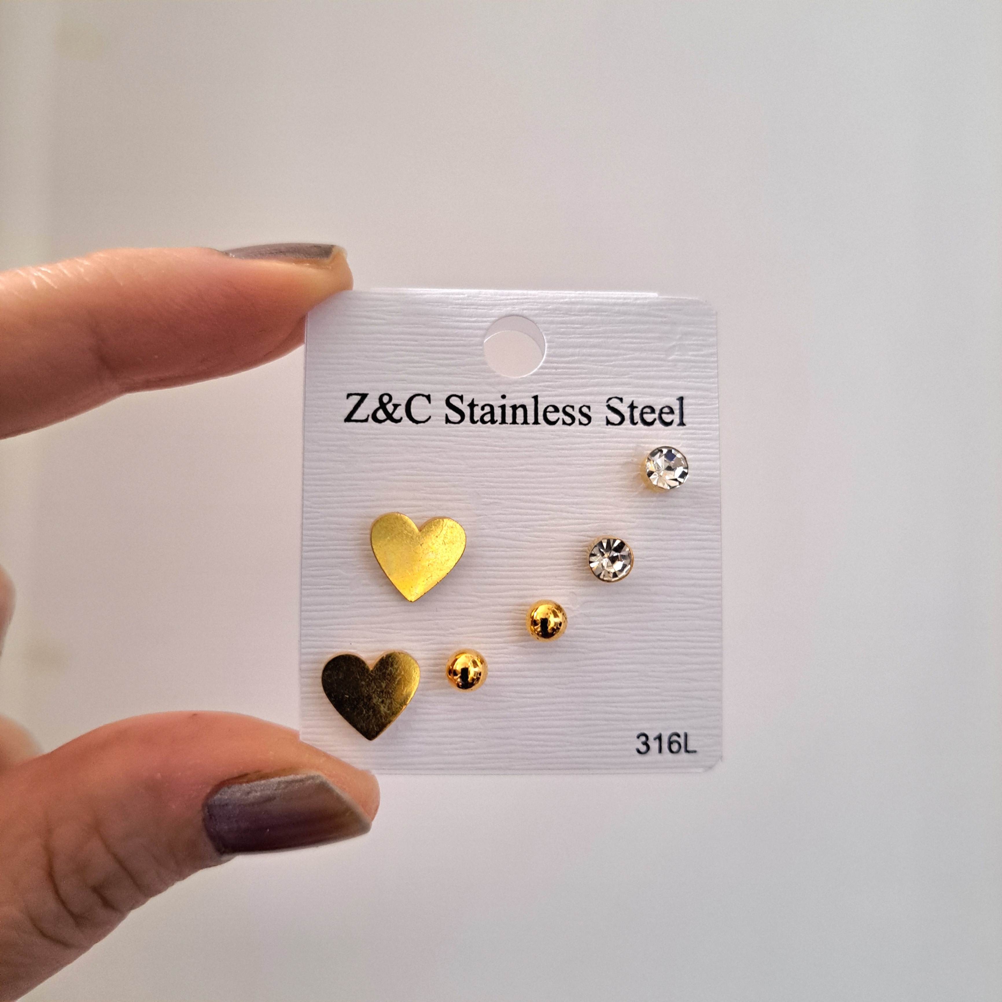 پک گوشواره ۳ جفتی استیل طلایی طرح قلب