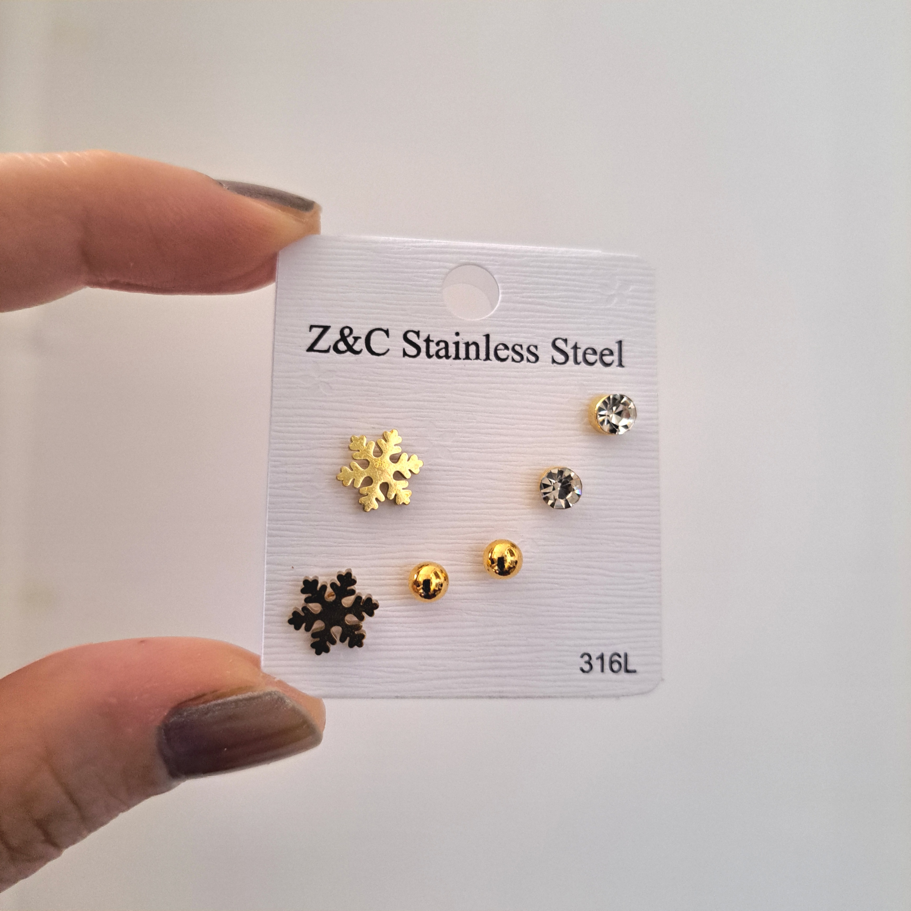 پک گوشواره ۳ جفتی استیل طلایی طرح برف