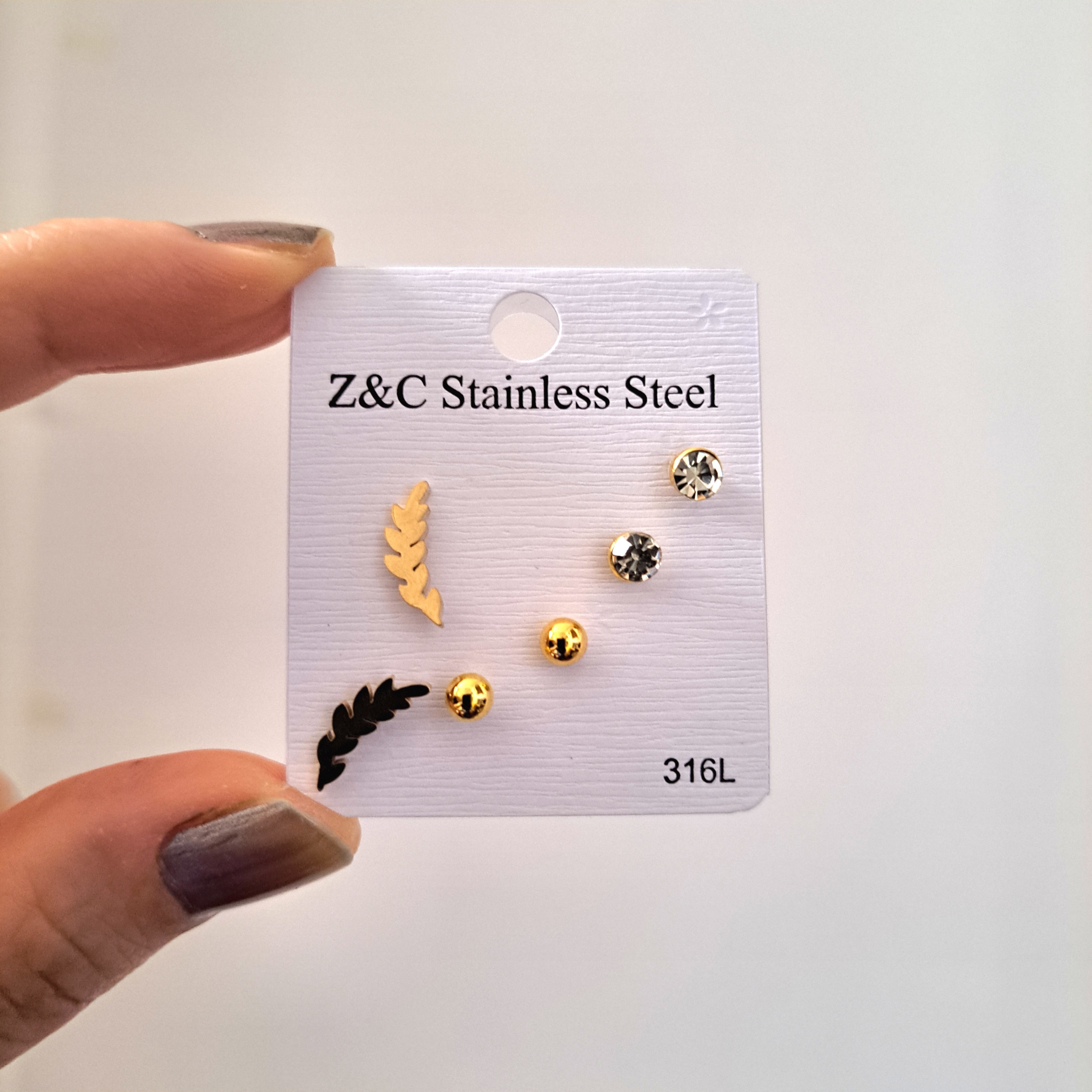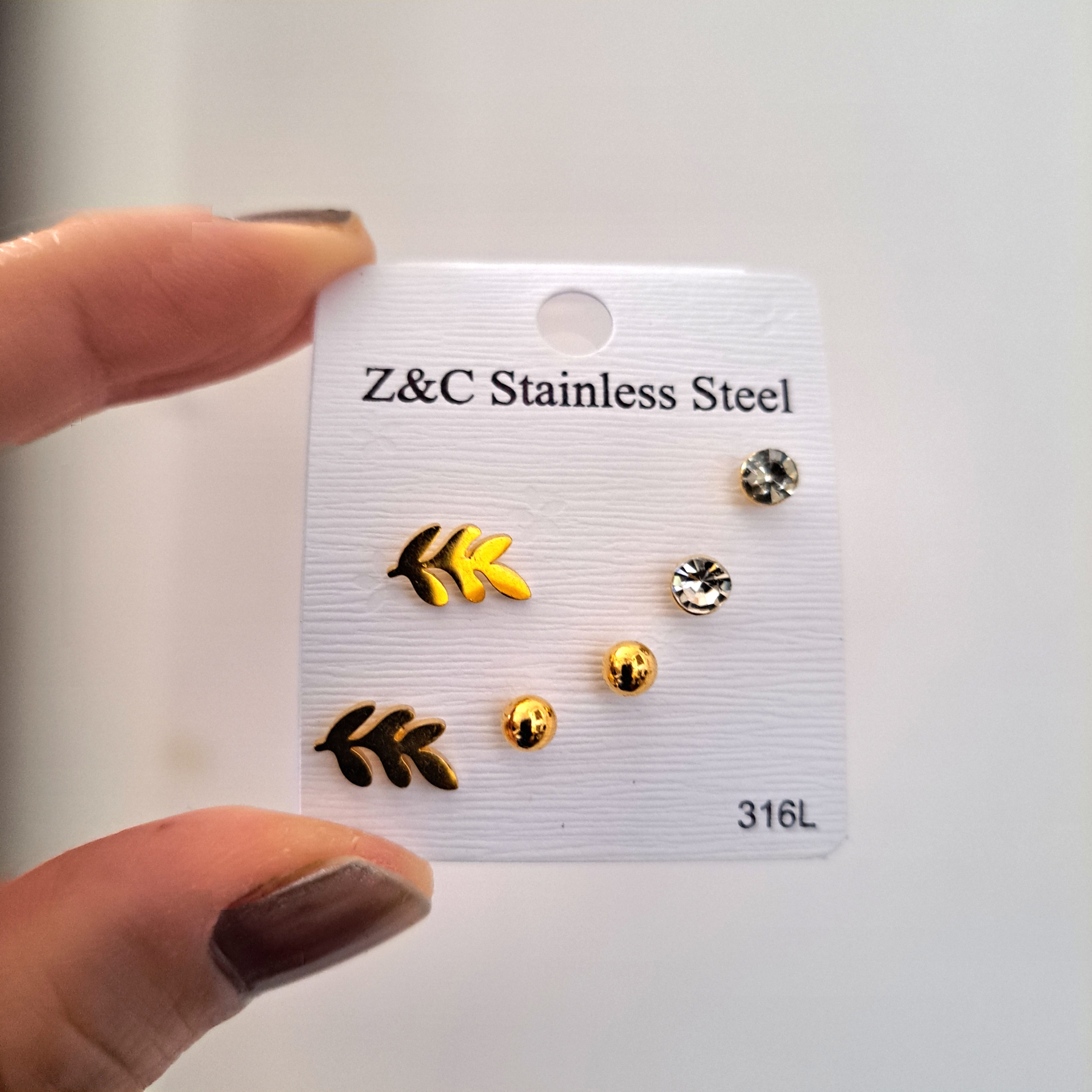 پک گوشواره ۳ جفتی استیل طلایی طرح برگ