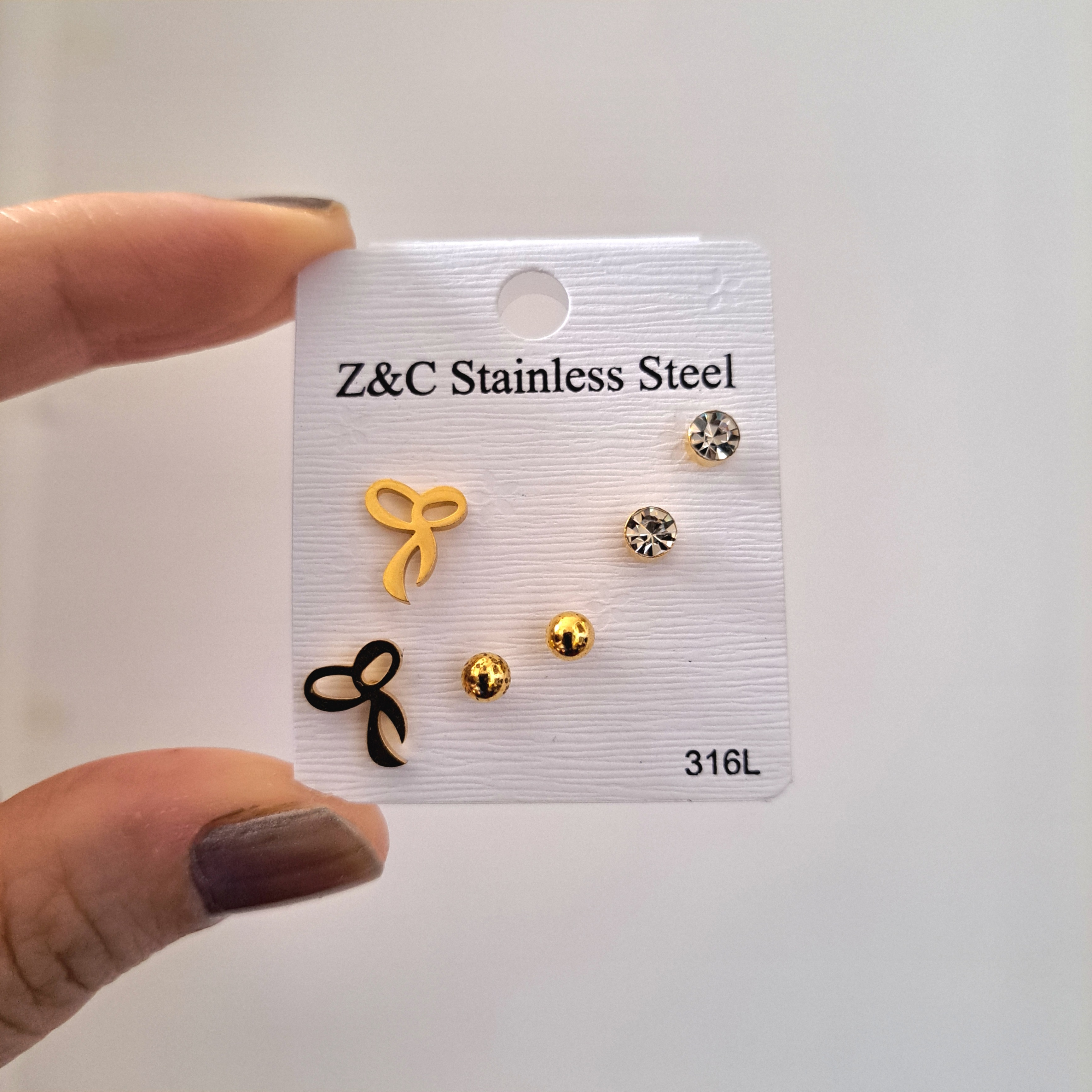 پک گوشواره ۳ جفتی استیل طلایی طرح پاپیون