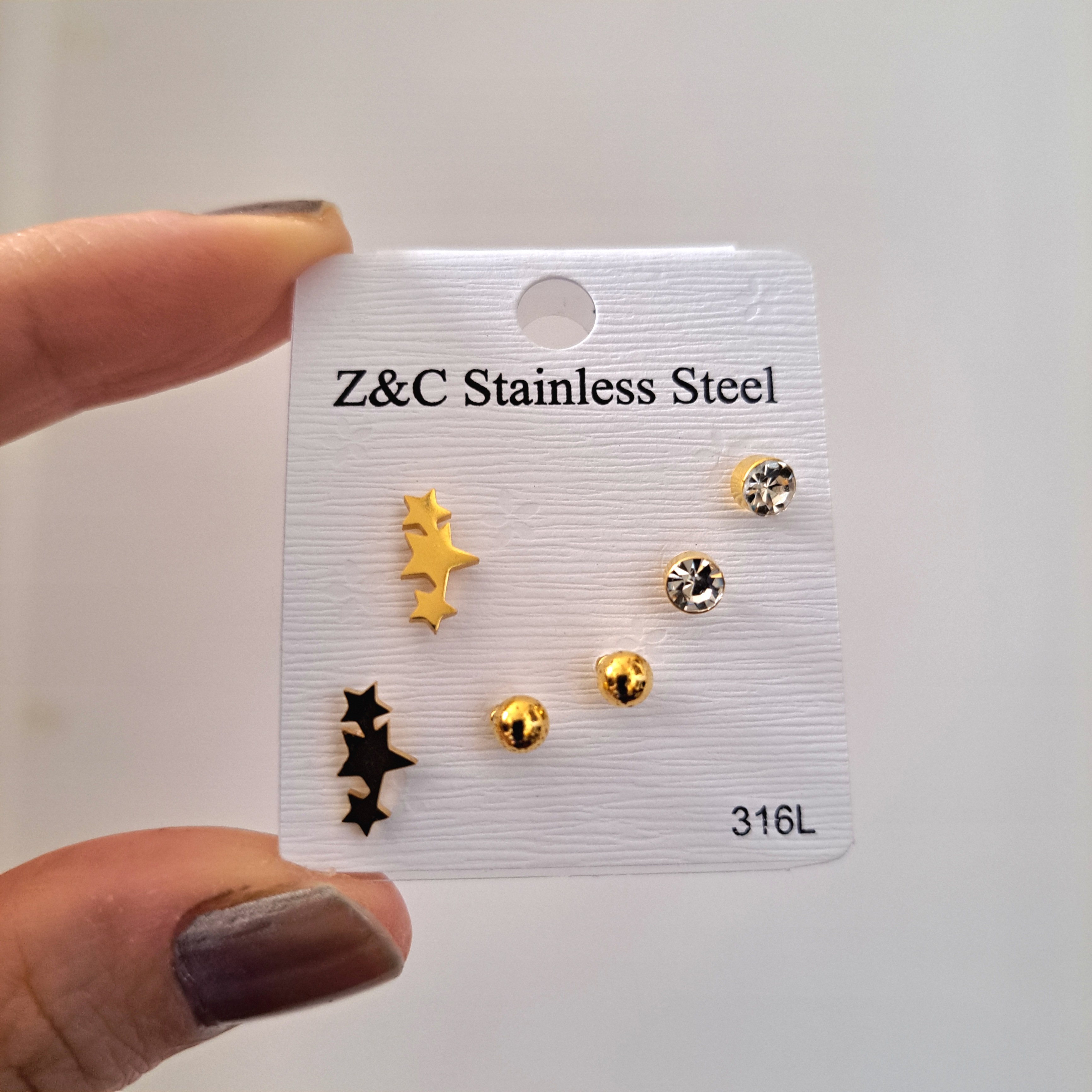 پک گوشواره ۳ جفتی استیل طلایی طرح ستاره