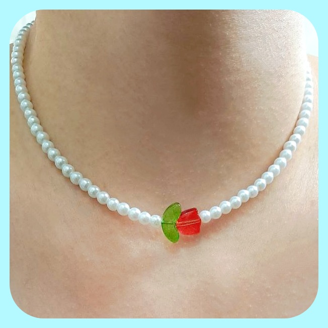 نیم ست گردنبند مروارید لاله قرمز با گوشواره