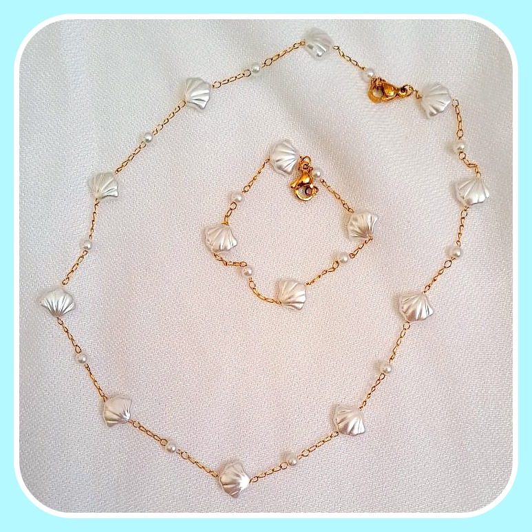 نیم ست گردنبند مروارید و گوشواره صدف سبز