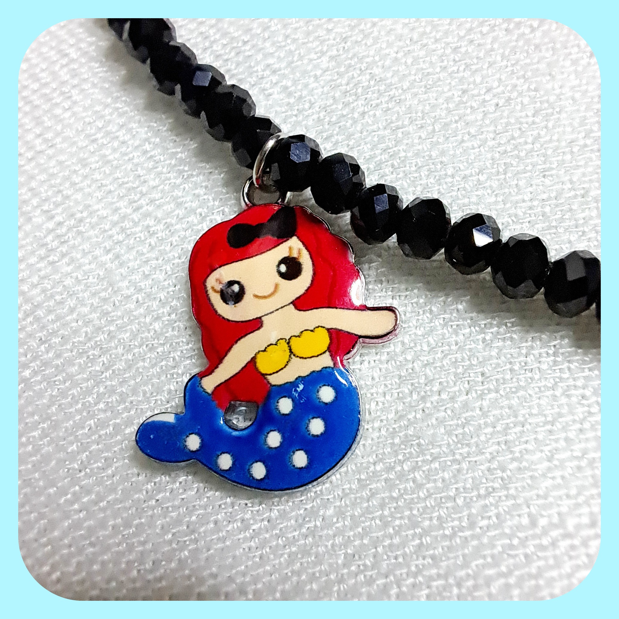 گردنبند کریستال مشکی با آویز پری‌دریایی