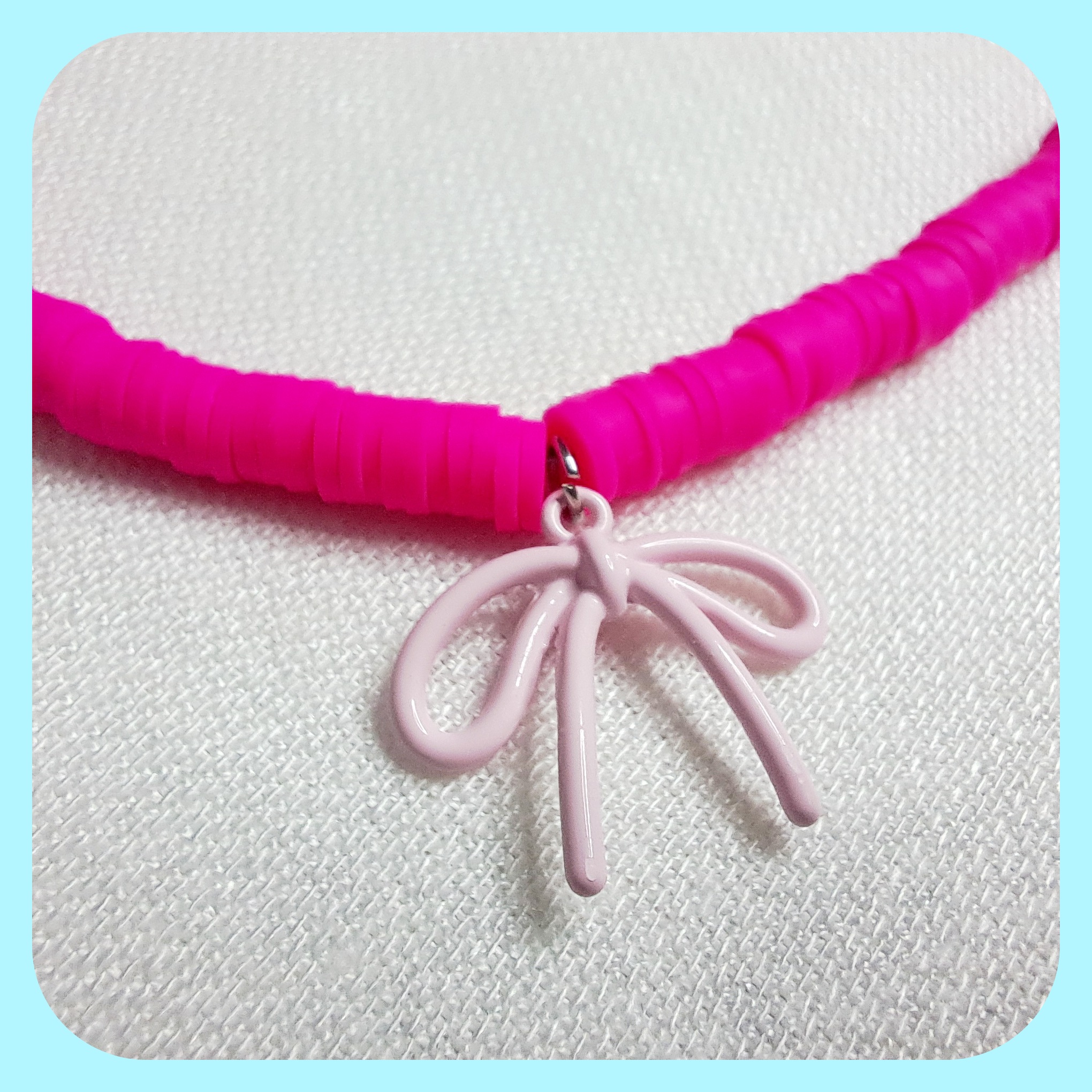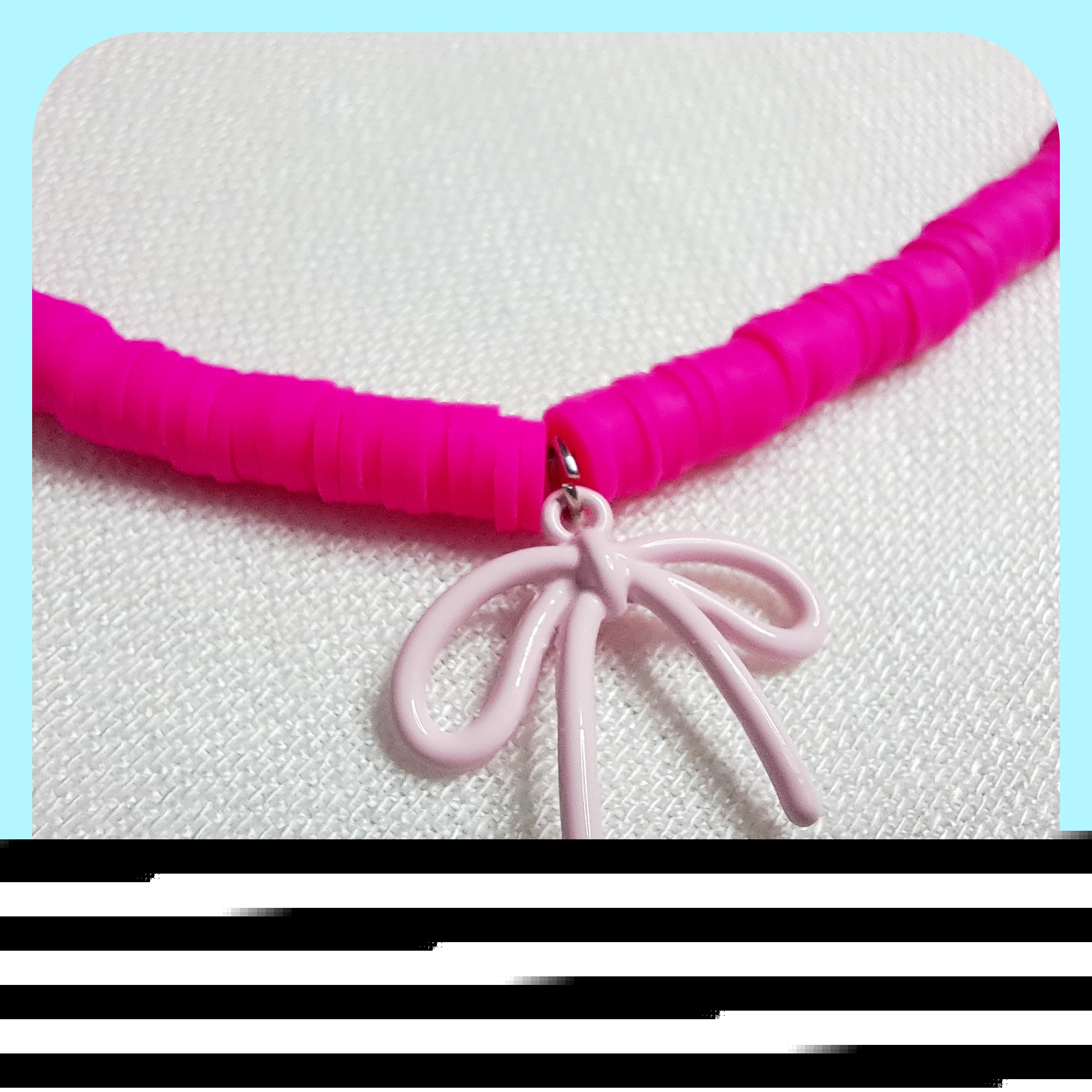 گردنبند فیمو صورتی با آویز پاپیون