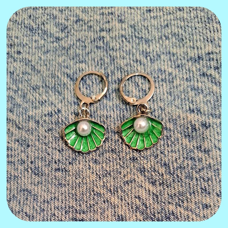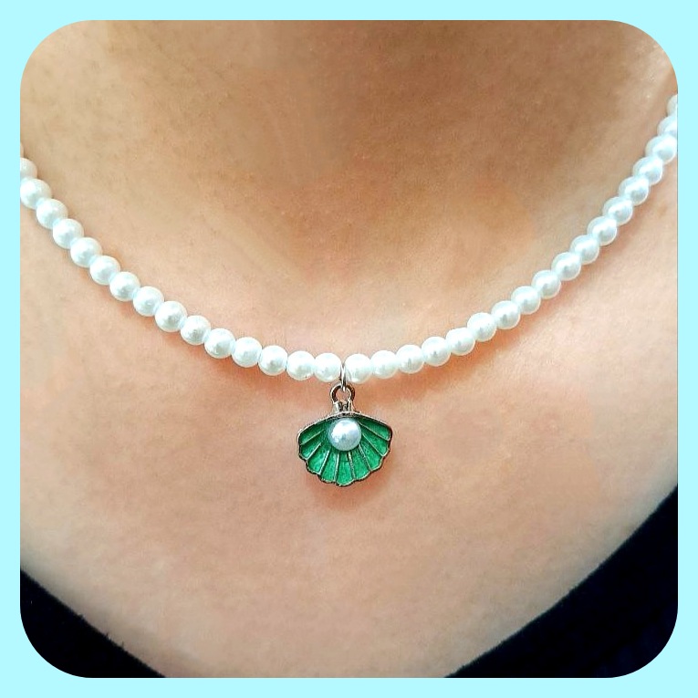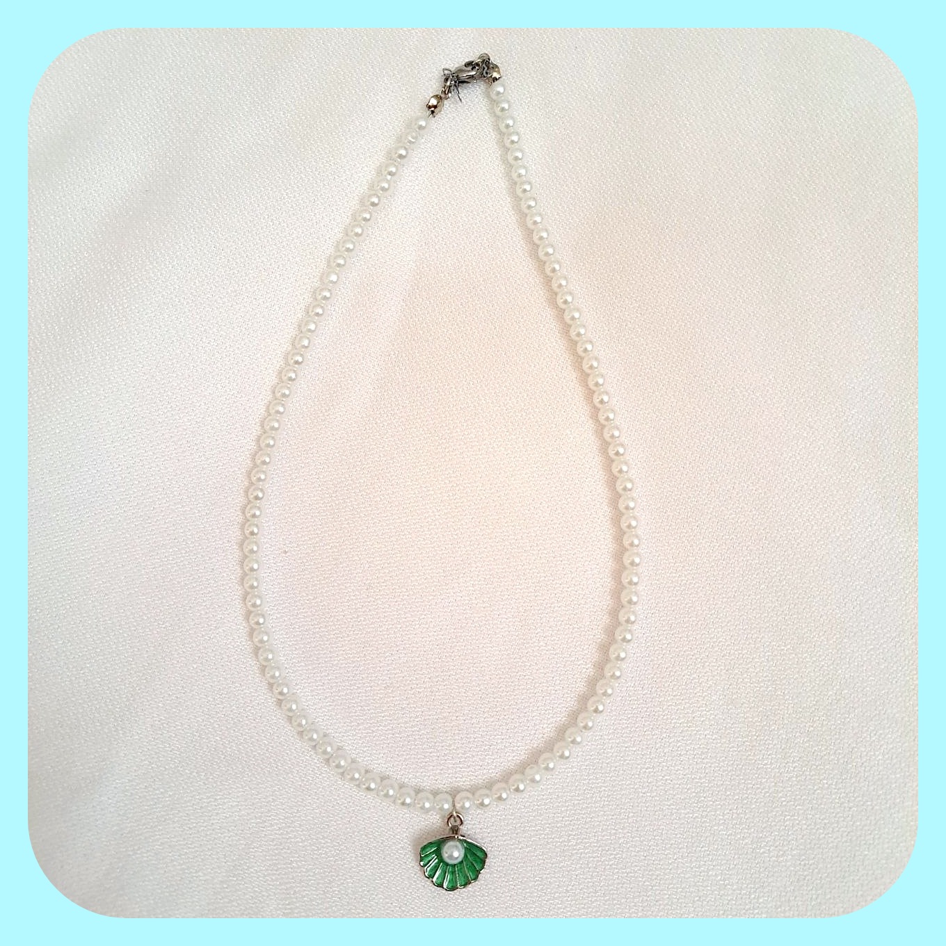 نیم ست گردنبند مروارید و گوشواره صدف سبز