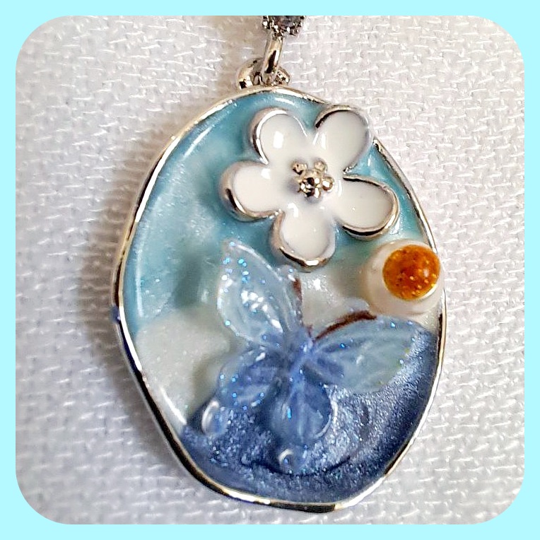 گردنبند میناکاری گل و پروانه