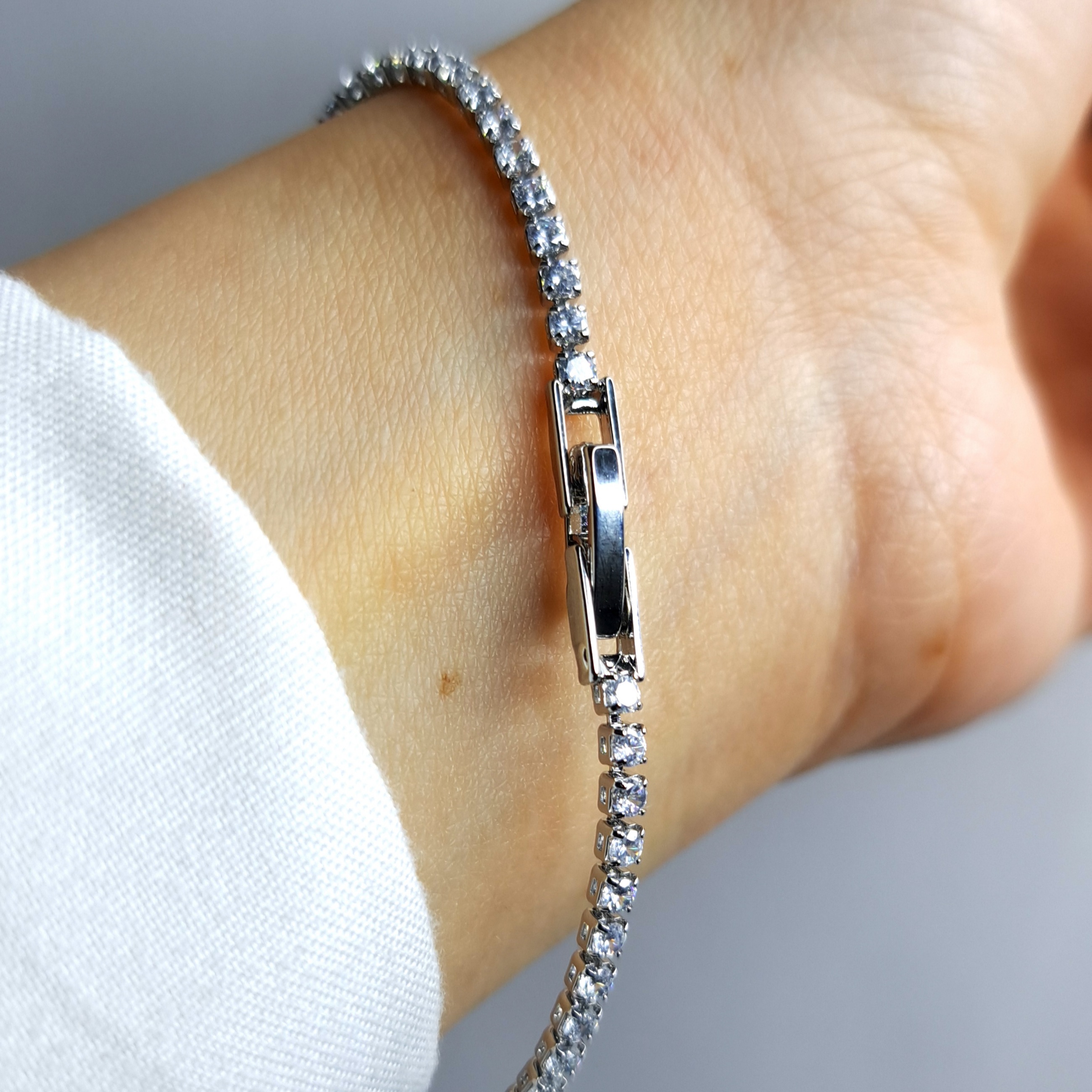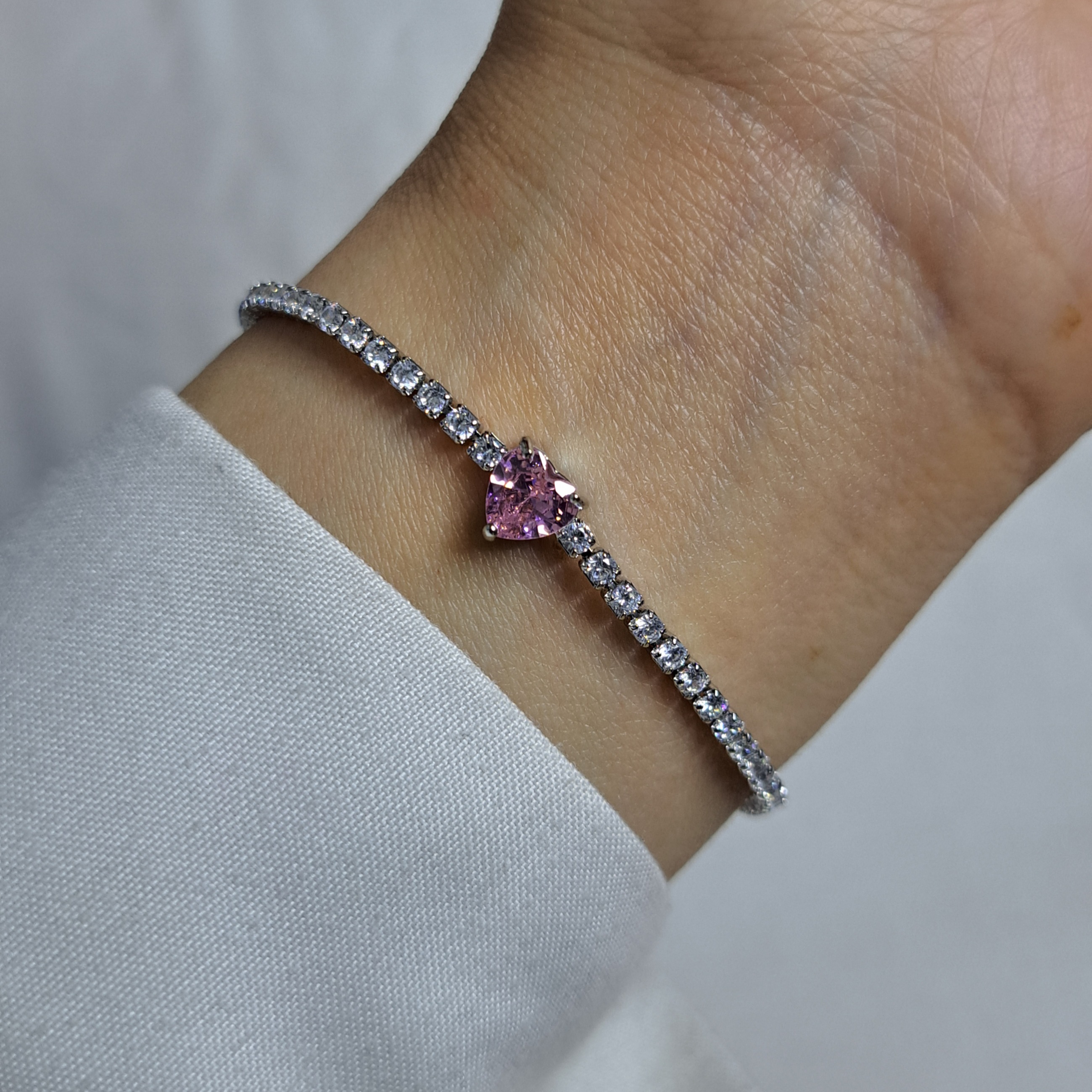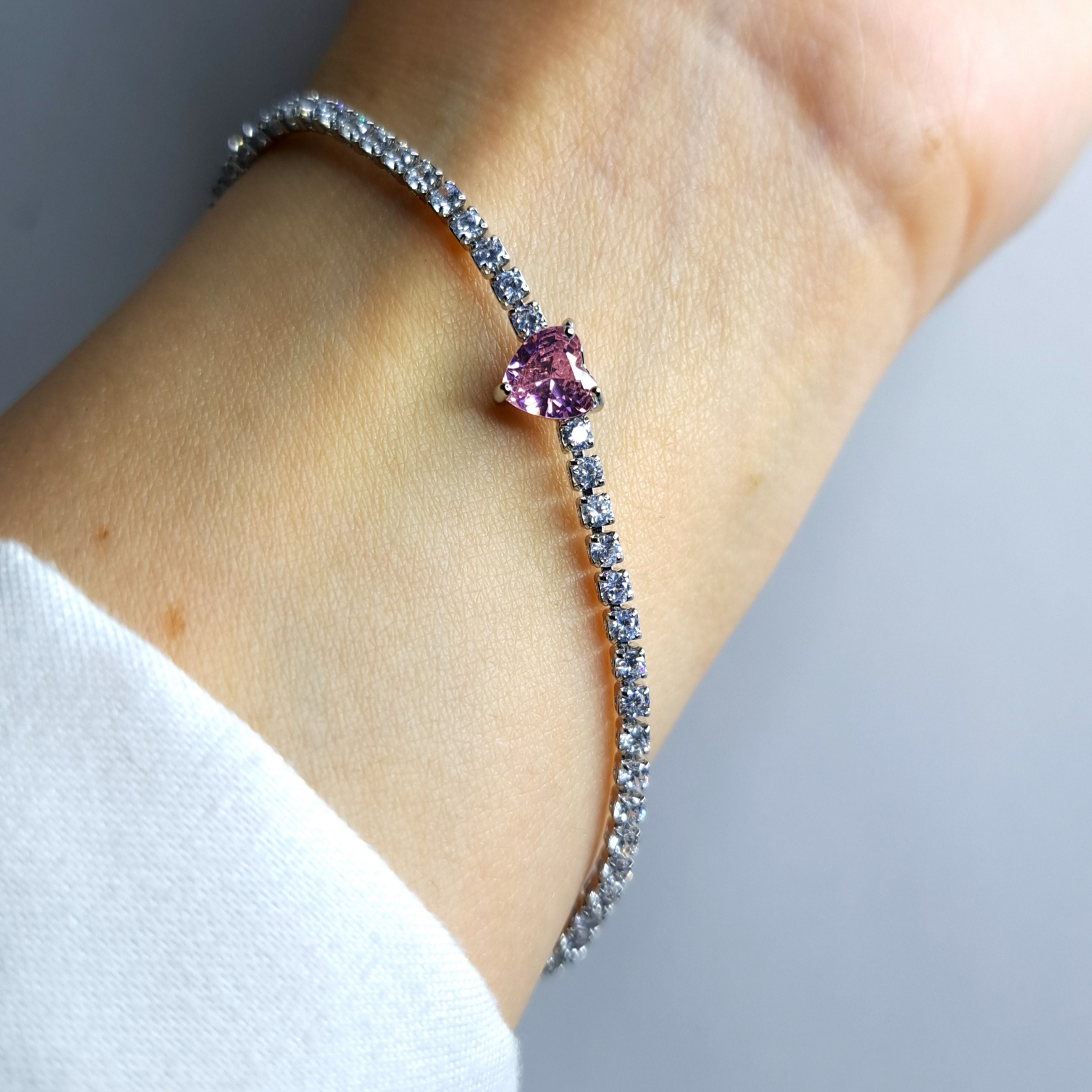دستبند تنیسی‌نگین سفید با قلب صورتی