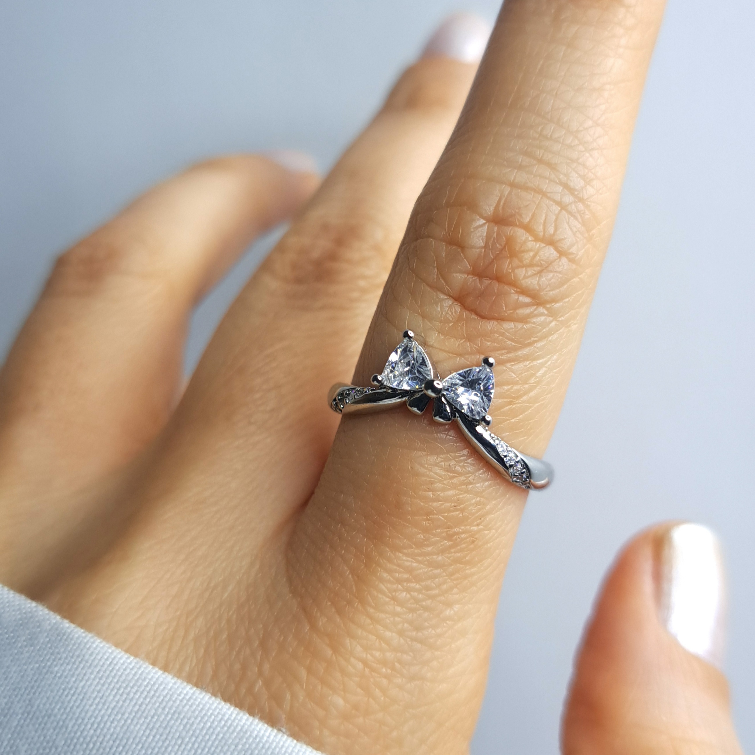 انگشتر پاپیون نگین سفید ریز