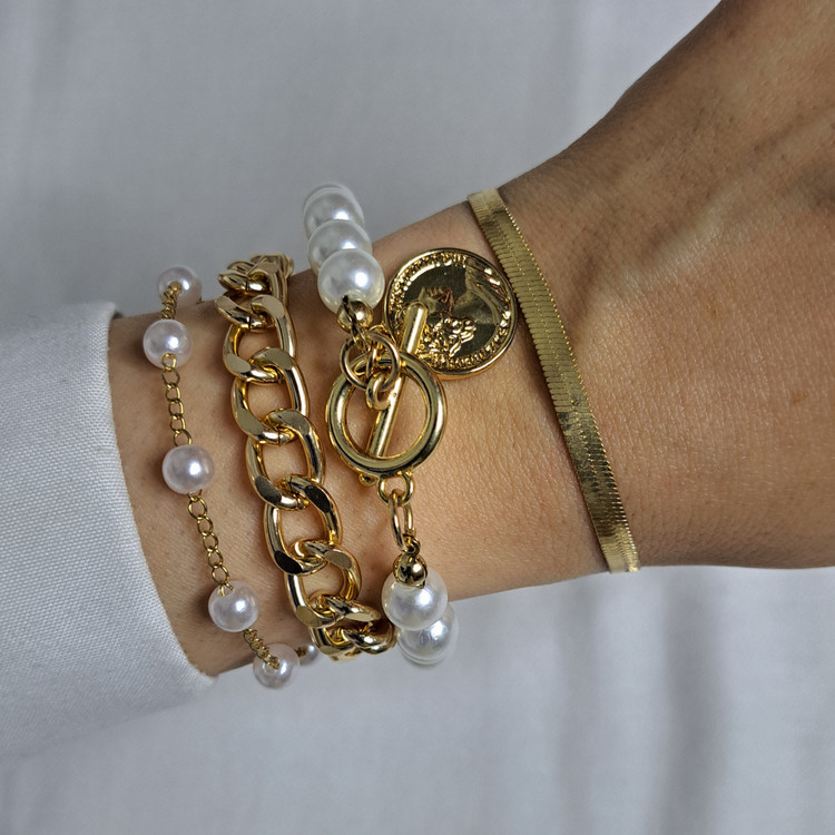 پک دستبند چهار عددی دستبند مروارید دستبند ماری دستبند قفل تی