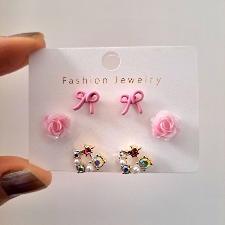 پک گوشواره ۳ جفتی گل رز و پاپیون