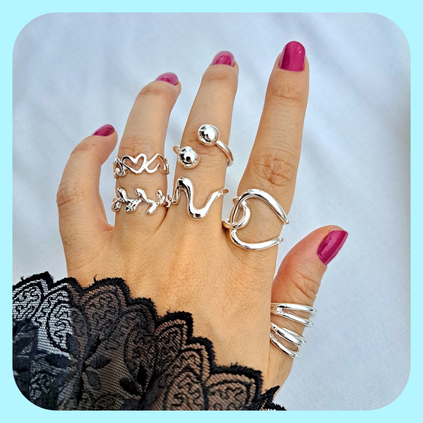 پک انگشتر ۶ عددی مینیمال آبکاری نقره برگ۲۴۰٬۰۰۰ تومان